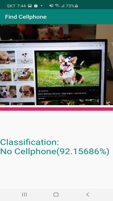 Using a little deep learning, if there is an object similar to a cell phone in the image shown on the camera, show it by increasing the percentage.!!