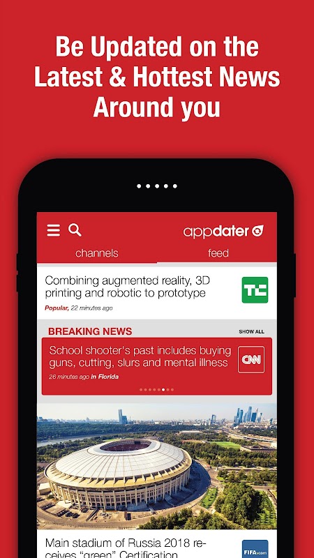 Appdater là một ứng dụng tin tức tùy chỉnh cho phép bạn khám phá các tin tức mới, xu hướng chủ đề, để xem các video mới nhất và được cập nhật trên tất cả các tin tức xảy ra xung quanh bạn.