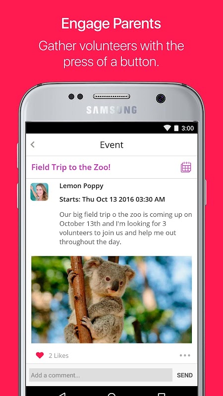 * Parents receive updates on any device and any platform: app, email, or SMS.