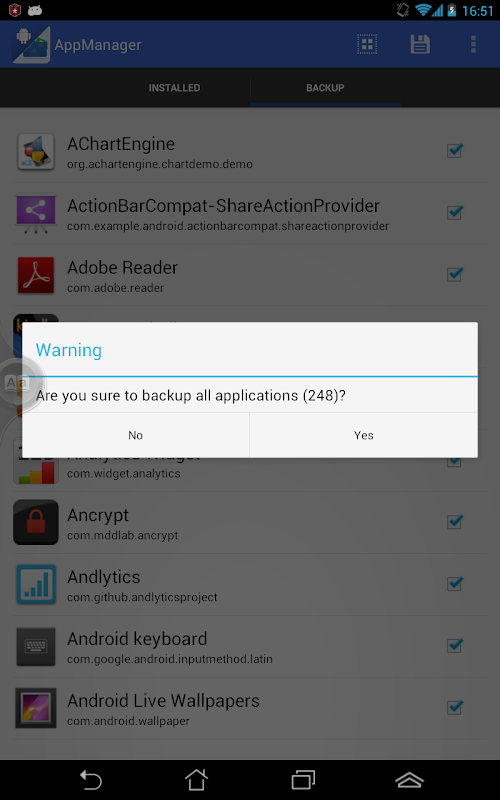 * Backup installed application on SD card