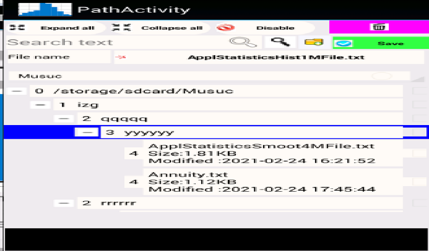 Các mẫu, kết quả xử lý và biểu đồ có thể được lưu trong cơ sở dữ liệu (Sqlit). Ví dụ, các bảng với những dữ liệu này có thể được xuất ra để in bằng trình duyệt Sqlit. Thực hiện chức năng "Init DB" (khởi tạo DB) từ menu của hoạt động khởi động, khi khởi động ứng dụng lần đầu tiên Với việc thực hiện chức năng này được tải và danh sách một số mẫu.