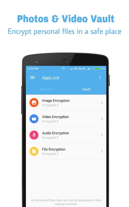 AppLock + Hide Gallery Vault provides you an All-In-One solution to guard your phone privacy.