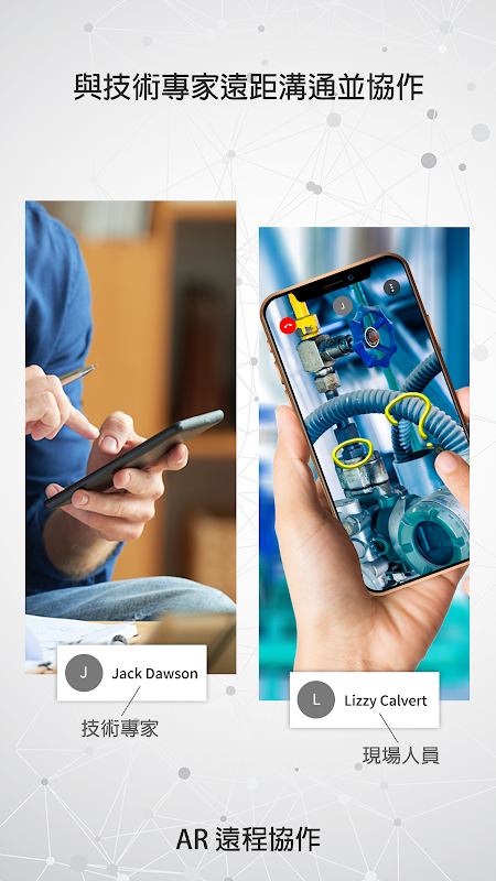 AR遠程協同為一款結合 AR 與視訊通話的服務。技術人員遇到維修問題時,可以透過手機、平板、智能眼鏡,將現場畫面即時分享給遠端技術專家,專家以手機/平板/Web等裝置在畫面上標註有效改善遠程協作溝通的種種問題,助力企業跨越距離隔閡,整合遠距協作資源、提升協作效率!