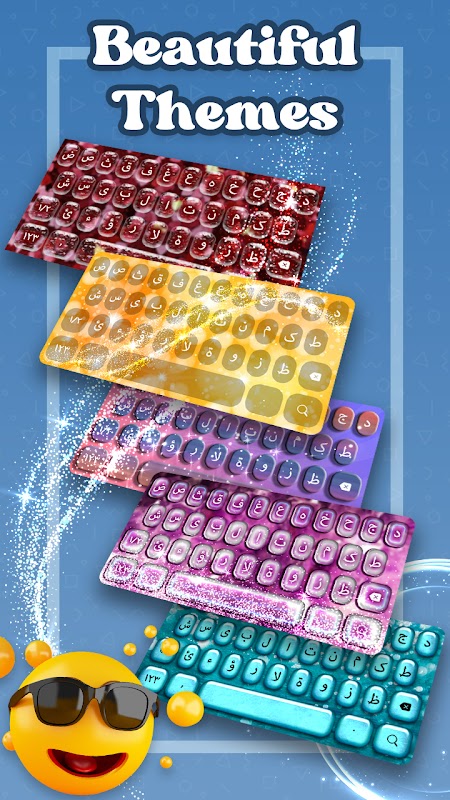 Bàn phím tiếng Ả Rập với các chủ đề đầy màu sắc. Bàn phím tiếng Ả Rập miễn phí có Biểu tượng cảm xúc.