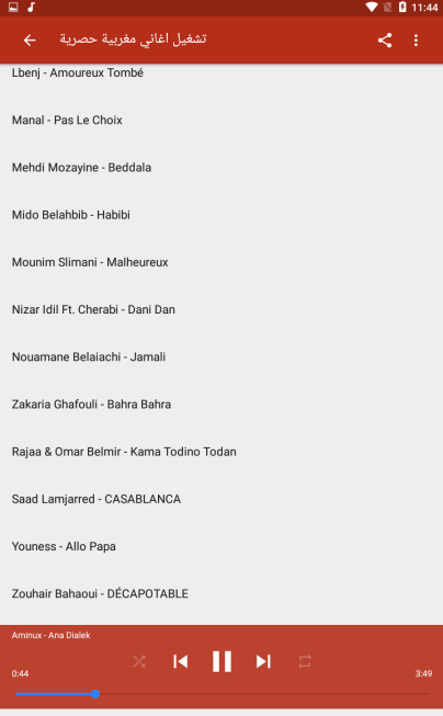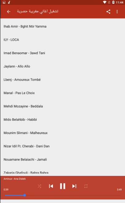 يحمل تطبيق اغاني مغربية مجموعة من اغاني aghani maghribia منها :