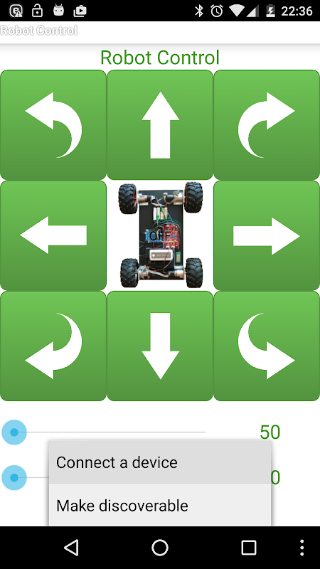 This application allows you to control any robot equipped with an Arduino board (tested with: Leonardo, Pro Micro) via bluetooth.