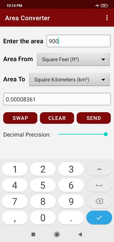 Cho dù bạn cần chuyển đổi kilômét vuông sang mét vuông, tính diện tích đất hay so sánh các đơn vị khác nhau như mẫu Anh sang dặm vuông, ứng dụng này đều mang lại kết quả nhanh chóng, chính xác. Lý tưởng cho sinh viên, kỹ sư hoặc bất kỳ ai đang tìm kiếm công cụ chuyển đổi khu vực ngoại tuyến miễn phí.