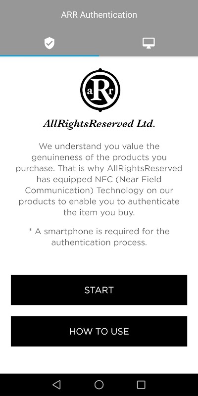 Với Xác thực ARR, bạn có thể xác minh tính xác thực của sản phẩm từ AllRightsReserved bằng cách chạm vào chip NFC của nó với điện thoại thông minh của bạn.