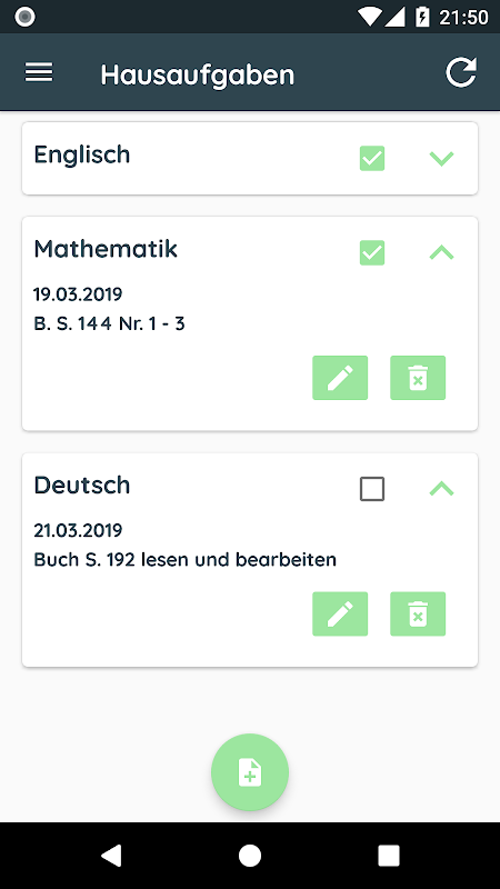 - Stundenplan - Hausaufgabenliste mit Erinnerungsfunktion - Filter können bearbeitet werden