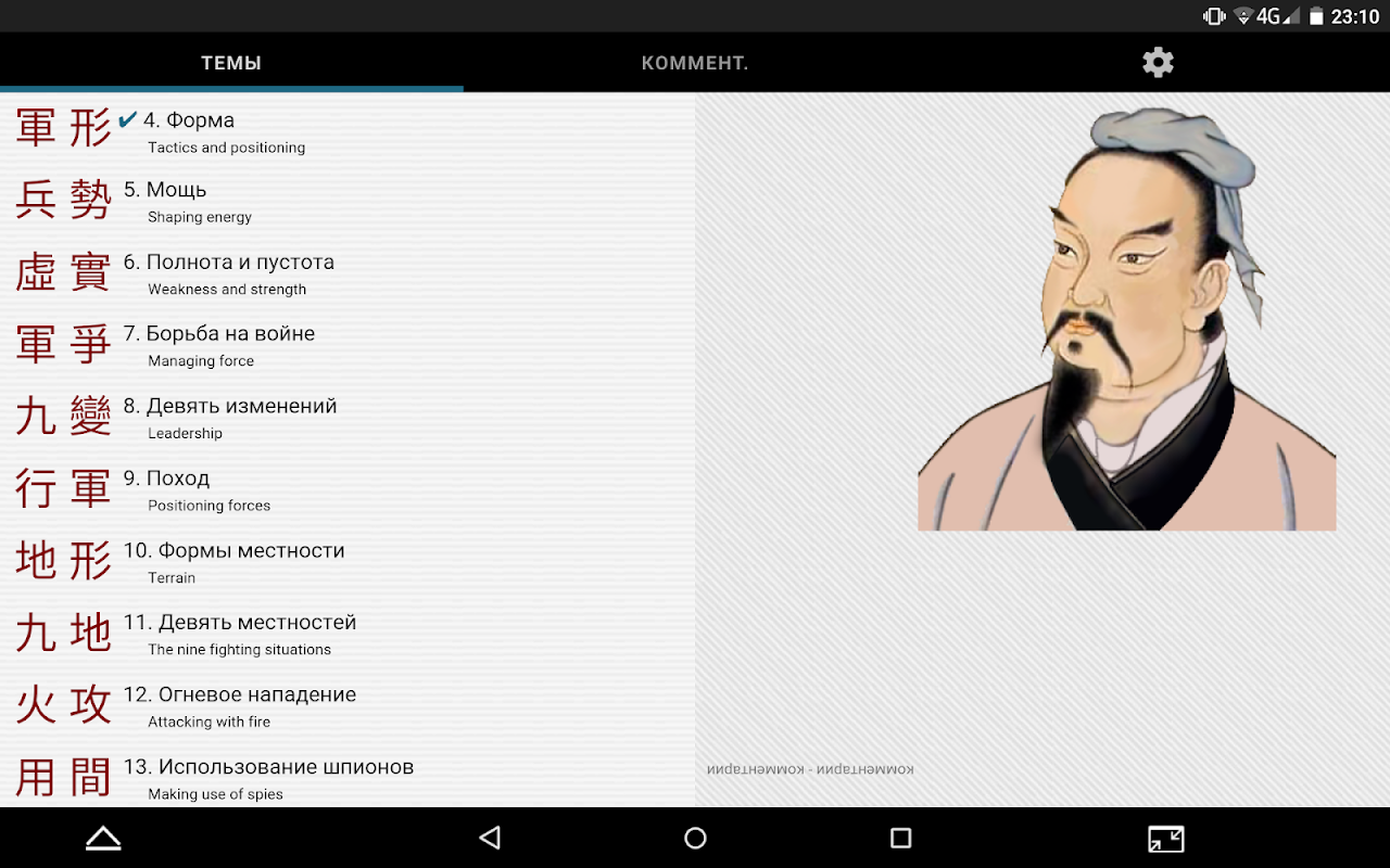 Và như Tôn Tử đã nói, lời dạy này có thể được áp dụng, có tính đến lợi ích, cho các lĩnh vực hoạt động (phi quân sự) hoàn toàn khác - ví dụ, trong thương mại hoặc công việc hành chính.