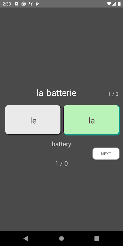 Với chương trình này, bạn có thể dễ dàng học 1500 từ tiếng Pháp với các bài Le / La, Un / Une và bản dịch.