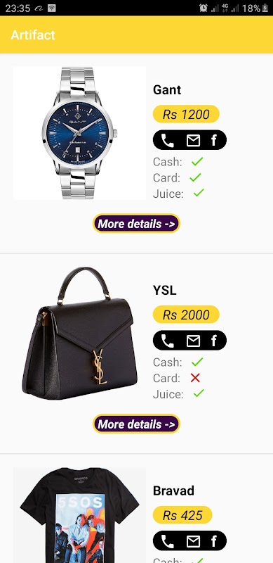 Artifact is an online shopping app where you can browse through the products of different shops.