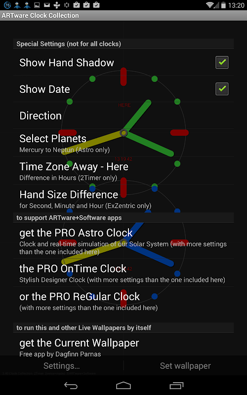 Bộ sưu tập của hầu hết các Artware Live Wallpaper Clocks với các tùy chọn mở rộng / cài đặt