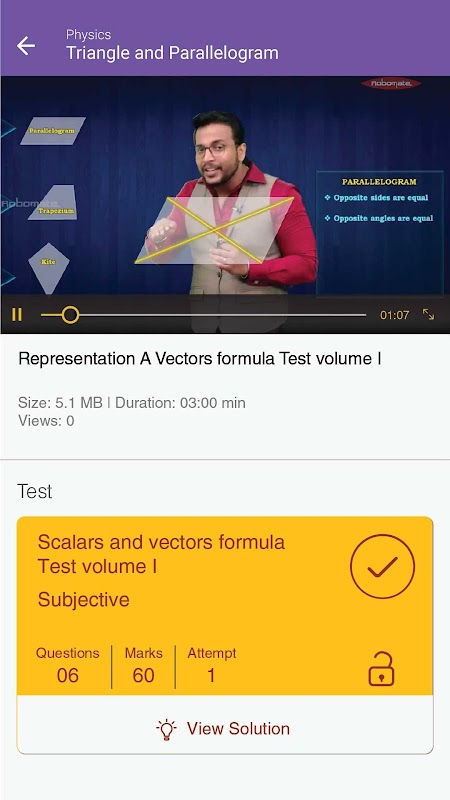 With the launch of this learning App, Arul Institute is poised to enter a new era of technology enabled learning. The App is available exclusively to the students and teachers of Arul Institute. Through this Learning App, you can access video lectures by expert teachers and take tests/assessments after watching the video lecture and/or after completing a chapter, whenever you want. These video lectures will help you in understanding concepts and solving question papers. Since the complete course videos are available with you 24/7 you can study and revise anytime throughout the year. The content is well organized by chapters and simply structured for easy navigation. Each chapter is broken into small modules of 5 to 7 mins each to keep the lectures interesting and to the point. The relevant topic is explained thoroughly. Animation and presentation have been included so that you can understand concepts better. You can even add notes to the video timeline and assess your performance with tests at the end of every chapter (EoC) and module (EoM).