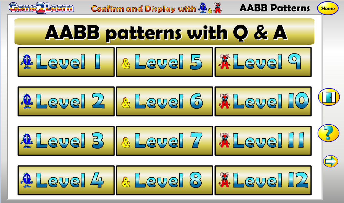 Assessing AABB Patterns with Q&A also includes a number of 'just for fun' brain games that reward children for completing each assessment task while breaking the continuous assessment cycle and its associated anxiety.