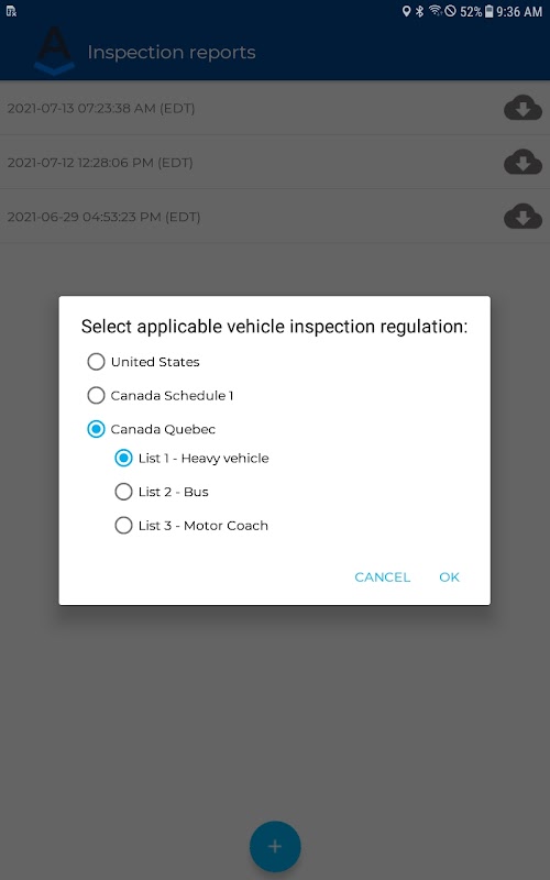 Ứng dụng tuân thủ FMCSA để ghi lại trạng thái nhiệm vụ của người lái xe và đáp ứng các quy định sau: