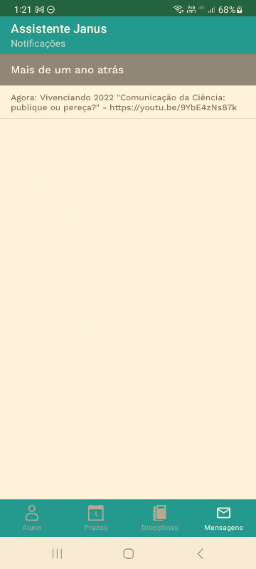 Trợ lý Janus là ứng dụng mới của Trưởng khoa Nghiên cứu sau đại học tại Đại học São Paulo nhằm mục đích hỗ trợ sinh viên tốt nghiệp USP theo dõi thông tin về các hoạt động của mình trong chương trình sau đại học, tạo sự linh hoạt trong tương tác giữa các sinh viên. sinh viên và trường đại học. Thông qua đó, sinh viên sẽ có thể theo dõi thông tin về khóa học và chương trình của mình, thời hạn trong chương trình sau đại học và sẽ nhận được thông báo liên quan đến họ, sẽ có thể kiểm tra thông tin về các khóa học đã tham gia và đăng ký và có thể theo dõi bao nhiêu tín chỉ cần thiết để hoàn thành chương trình.