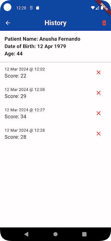 *) Lịch sử đánh giá: Người dùng có quyền truy cập vào lịch sử toàn diện về các đánh giá bệnh hen suyễn trong ứng dụng, cho phép họ xem lại các đánh giá trước đây và theo dõi những thay đổi về tình trạng hen suyễn của họ theo thời gian.