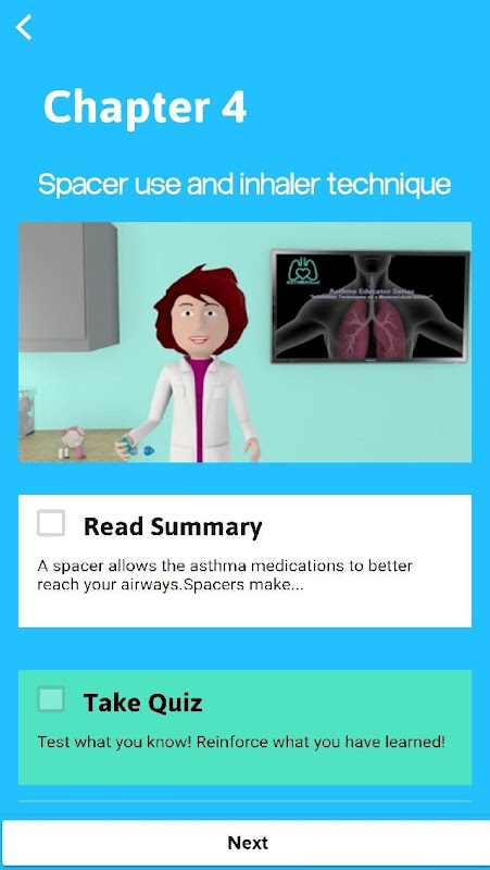 ASTHMAXcel ED có các hoạt động vui chơi, phim ảnh, nhắc nhở về thuốc và tin nhắn / mẹo về cách kiểm soát hen suyễn tốt hơn. Ứng dụng này sẽ dạy bạn về bệnh hen suyễn một cách thú vị!