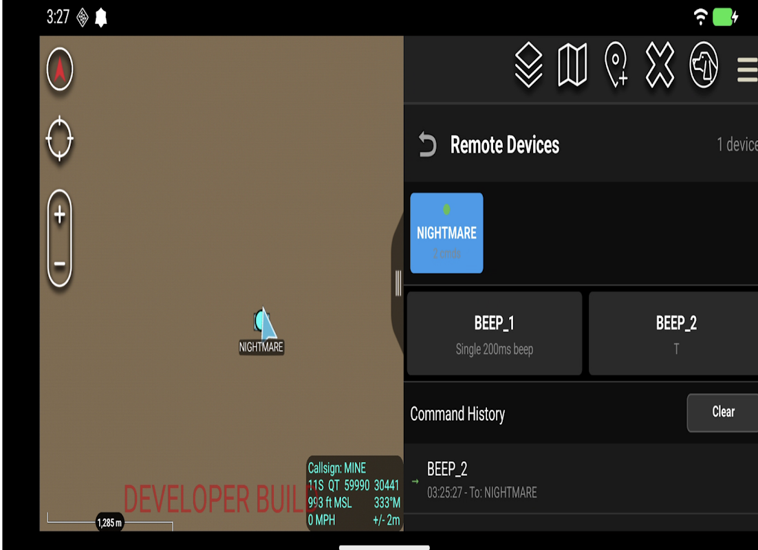 Gửi lệnh đến người dùng μcontrol trên các thiết bị khác thông qua máy chủ TAK của bạn. Nhấn giữ bất kỳ điểm đánh dấu μcontrol nào trên bản đồ để gửi lệnh đến phần cứng được kết nối của người điều hành đó.