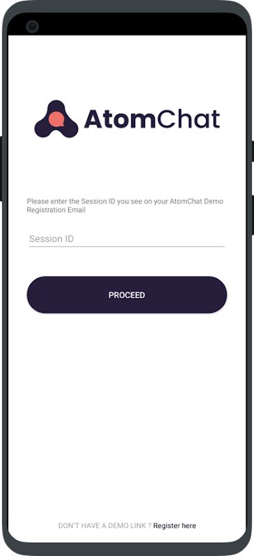 To test the AtomChat app on mobile, simply click the "Register Here" button on the login screen. You will receive an AtomChat Demo Link on your email id. Kindly click the link and it will log you into the AtomChat app.