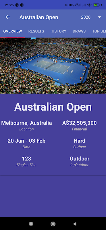 Là một người hâm mộ quần vợt, tôi muốn một ứng dụng kết hợp lịch trình thời gian các trận đấu Quần vợt, Thông tin giải đấu với Rút thăm, Thống kê, Xếp hạng Trực tiếp với tình huống tốt nhất cho người chơi, Chi tiết trận đấu trực tiếp và Thông tin hồ sơ người chơi chỉ với một cú nhấp chuột.