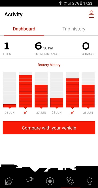 Your car compared to an electric vehicle. Audi e-xperience maps your car trips. Based on your current fuel consumption the app will tell you if an electric vehicle suits your mobility needs. In addition it also calculates your savings in terms of consumption and CO2 emissions.
