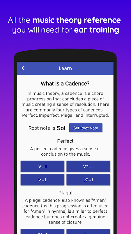 Trong chế độ Tìm hiểu, bạn có thể phát lại bất kỳ khoảng thời gian, tỷ lệ, chế độ, hợp âm hoặc nhịp để hiểu âm thanh của nó. Các quãng và hợp âm có thể được chơi cả hài hòa và giai điệu.