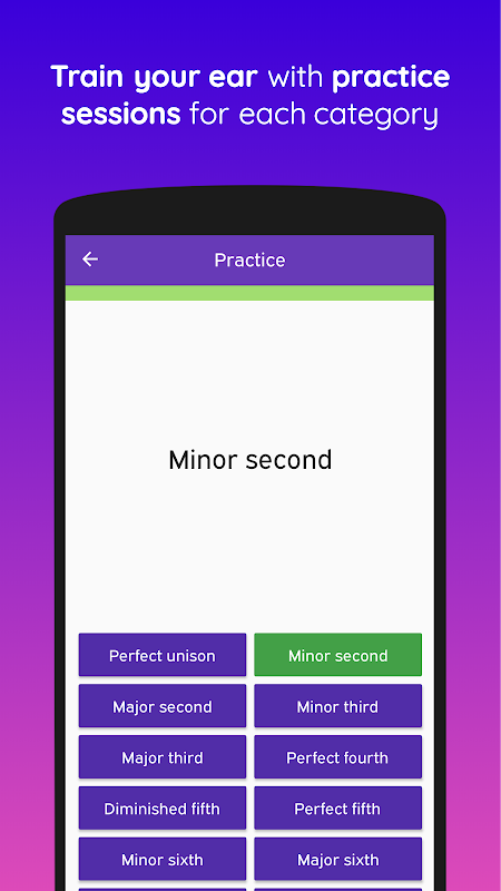 Trong chế độ Thực hành, một mẫu nhạc du dương hoặc hài hòa sẽ được phát và bạn sẽ được yêu cầu xác định khoảng, tỷ lệ, chế độ, hợp âm hoặc nhịp. Thực hành theo cách này đã được chứng minh để cải thiện kỹ năng âm thanh của bạn.