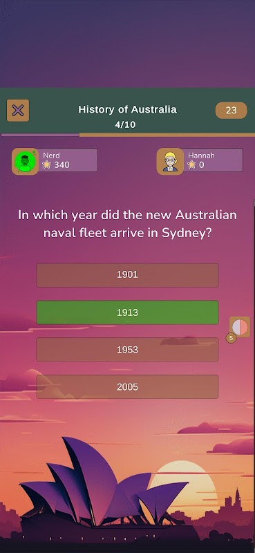 Mở khóa một loạt các câu hỏi đố vui đầy thử thách trải dài trên nhiều danh mục, bao gồm lịch sử, địa lý, động vật hoang dã, văn hóa, Anzac, v.v. Cạnh tranh trực tiếp với bạn bè, đồng thời khám phá bức tranh phong phú về di sản và kỳ quan thiên nhiên của Úc.