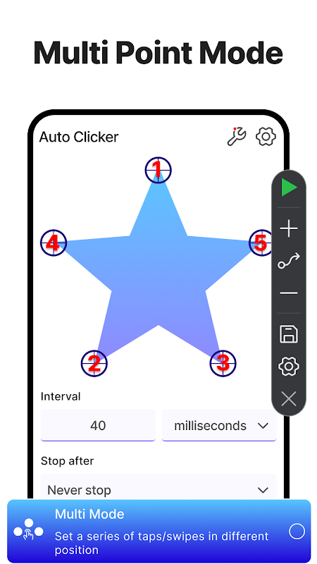 ✔️ Chế độ đa điểm - Tự động chạm vào nhiều điểm.