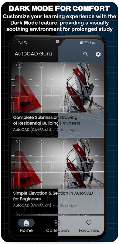Từ những kỹ thuật cơ bản đến nâng cao, ứng dụng của chúng tôi bao gồm mọi thứ bạn cần biết về AutoCAD. Cho dù bạn đang định hình cảnh quan bằng các thiết kế Kỹ thuật Xây dựng hay xây dựng các sơ đồ kiến trúc phức tạp, ứng dụng này sẽ là hướng dẫn bạn cần thực hiện.