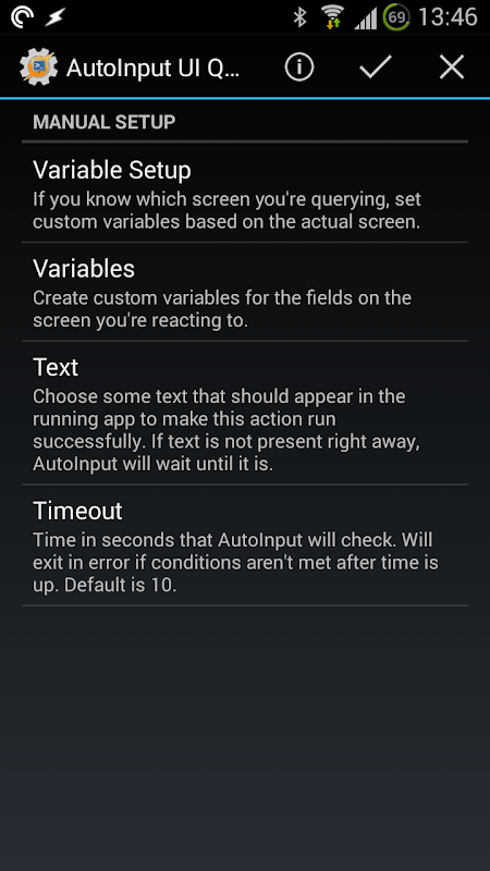 AutoInput là một plugin Tasker. Bạn cần cài đặt Tasker (https://play.google.com/store/apps/details?id=net.dinglisch.android.taskerm) để sử dụng hầu hết các tính năng của nó, vì vậy hãy lưu ý điều đó trước khi sử dụng.