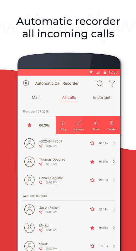📢Automatic Call Recorder sẽ sắp xếp danh sách ghi âm cuộc gọi đến và đi theo ý bạn thông minh và tinh ý