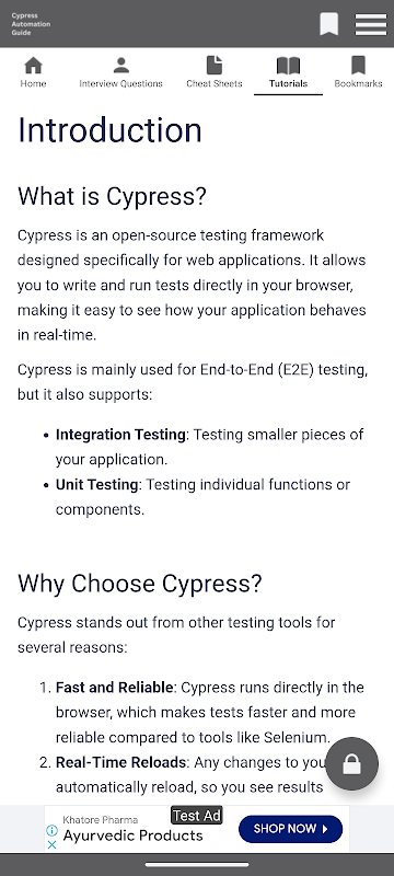 Thử nghiệm tự động hóa Master Cypress với ứng dụng di động tất cả trong một tối ưu dành cho các chuyên gia QA và những người đam mê tự động hóa thử nghiệm. Cho dù bạn mới bắt đầu hay đang chuẩn bị cho cuộc phỏng vấn lớn tiếp theo, Hướng dẫn tự động hóa Cypress là nguồn tài nguyên cần thiết cho mọi thứ về Cypress!