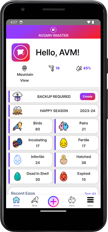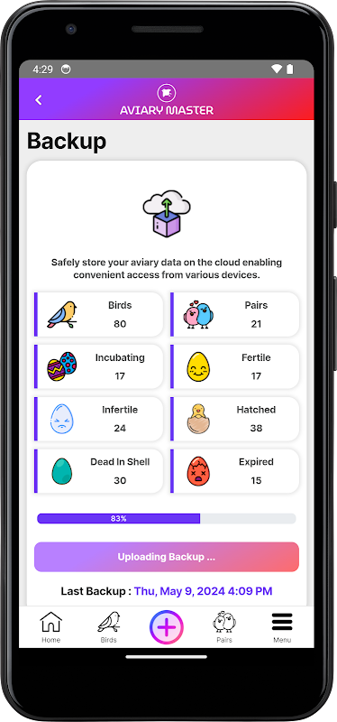 Aviary Master được coi là ứng dụng quản lý chuồng chim tối ưu, xóa tan nỗi phiền toái về hồ sơ giấy tờ bị thất lạc, các bảng tính lộn xộn và các ghi chú lịch rải rác. Công cụ toàn diện này giúp đơn giản hóa việc quản lý gà, cặp đôi, trứng và quá trình nuôi dưỡng, cung cấp một giải pháp kỹ thuật số liền mạch. Dễ dàng tải dữ liệu chuồng chim của bạn lên đám mây và truy cập dữ liệu đó một cách thuận tiện từ nhiều thiết bị khác nhau. Với Aviary Master, những người đam mê chim có thể theo dõi và nuôi dưỡng những người bạn đồng hành có lông của mình một cách hiệu quả, giúp việc quản lý chim trở nên dễ dàng.