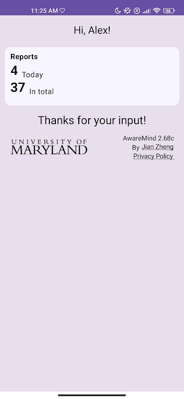 Mục đích của nghiên cứu này là để tìm hiểu cách mọi người tương tác với điện thoại thông minh của họ. AwareMind thu thập dữ liệu theo ba danh mục riêng biệt: phản hồi cho các cuộc khảo sát ngắn trong ứng dụng, tương tác nhập dữ liệu của người dùng và lịch sử sử dụng ứng dụng. Điều quan trọng cần lưu ý là AwareMind không thu thập bất kỳ thông tin nhận dạng cá nhân nào.