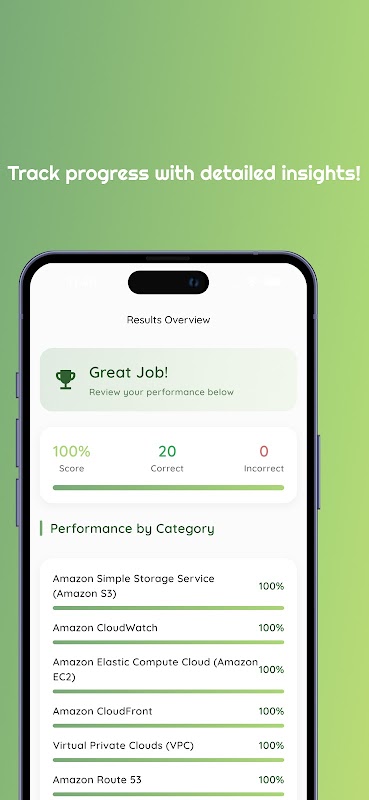 Làm chủ các kỹ năng của bạn với trình mô phỏng kỳ thi thực tế của chúng tôi, theo dõi tiến trình của bạn bằng các phân tích chi tiết và tìm hiểu các khái niệm cốt lõi của AWS thông qua các hướng dẫn do chuyên gia biên soạn. Học mọi lúc, mọi nơi.