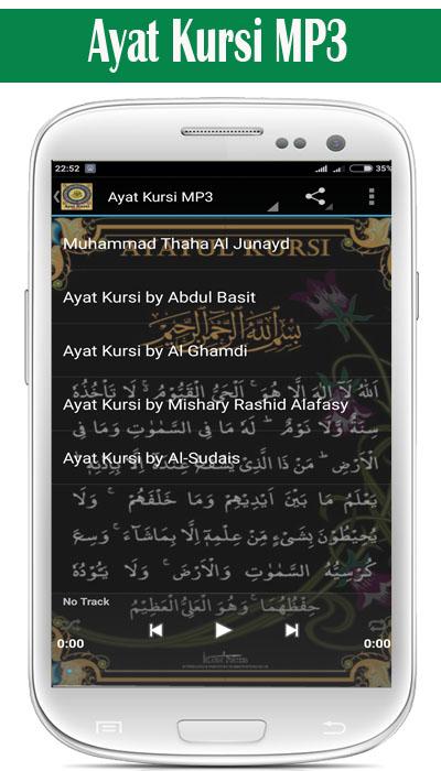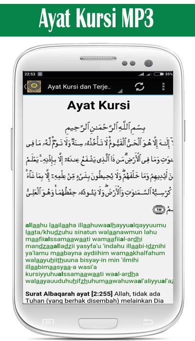 Aplikasi MP3 ayat Kursi merupakan aplikasi dương berisi bacaan ayat Kursi dalam teks Ả Rập, Bacaan Latin ayat Kursi, terjemahan ayat kursi dalam Bahasa Indonesia, Serta dilengkapi dengan dari tập tin MP3 beberapa Qari Dunia.