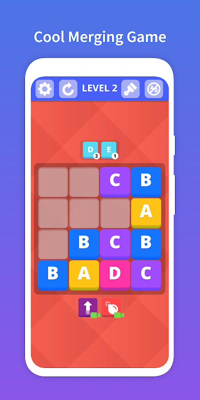 Vuốt theo bất kỳ hướng chính nào để hợp nhất các bảng chữ cái có cùng thứ tự để có được các bảng chữ cái cao hơn tiếp theo. Thu thập số lượng bảng chữ cái cần thiết và tiến hành tiếp theo. Hoàn thành các cấp độ để kiếm các tùy chỉnh nền! Sử dụng sức mạnh đặc biệt khi bạn gặp khó khăn!