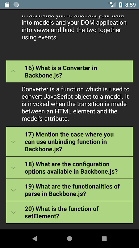 Ứng dụng này có chứa hỏi thường gặp Backbone js câu hỏi phỏng vấn và câu trả lời.