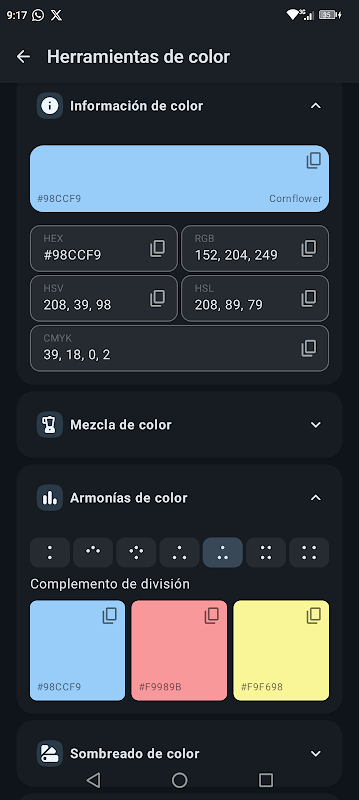 • Trích xuất mã HEX và tạo bảng màu hài hòa (hai, ba, bốn màu).