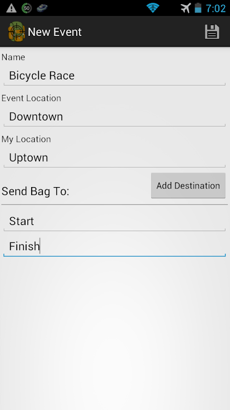 The bags are grouped into events. Multiple events can be created and only bags entered in to that event will be shown. Bags can be sent to a location or sent back to a queue of all waiting bags.