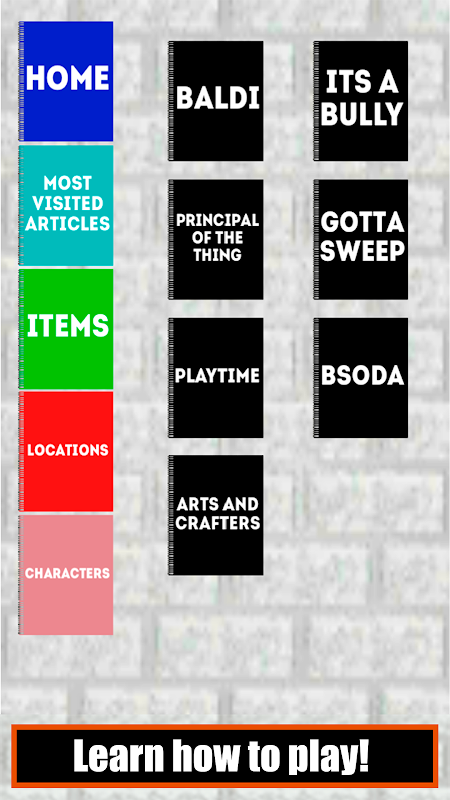 Enjoy! The guide will tell you how to play, where to find assignments and tell about the nature of each character of the game. Baldi's basics in education and learning can remind you of one of the horror games five nights, but you will be chased by someone worse than freddy. You have to go around all the cabinets in the school, find notebook and solve all the mathematical problems. Check at what level your education and learning, but there is one problem: some problems may be unsolvable and then baldi will become angry, and you can be horror.