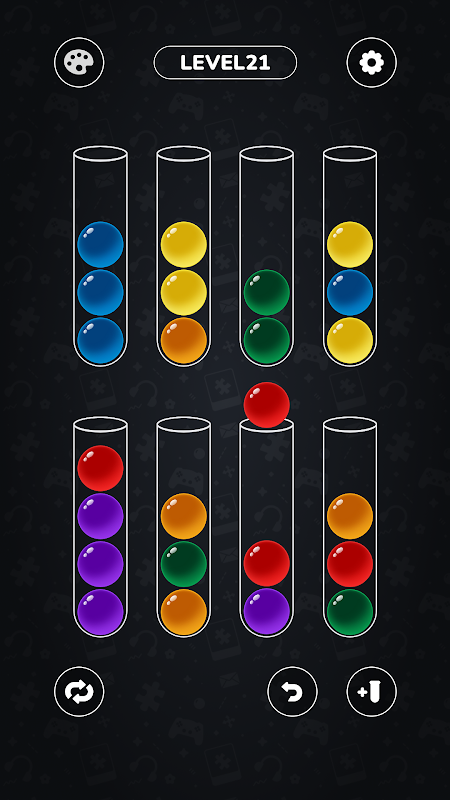 - Các quả bóng cùng màu được xếp vào một ống, bạn sẽ thắng màn chơi.