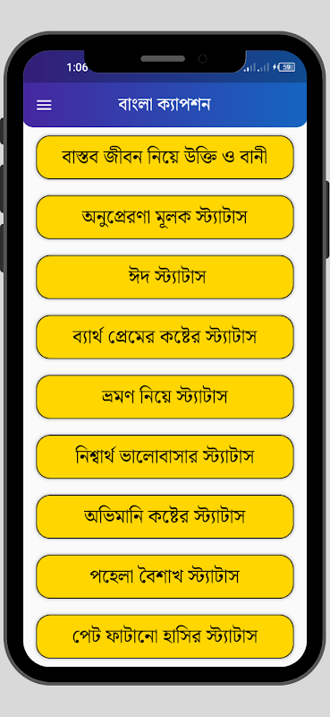 Chúng tôi tin vào chất lượng hơn số lượng. Ứng dụng này mang đến cho bạn Bộ sưu tập trạng thái và chú thích Bangla hay nhất từ trước đến nay.