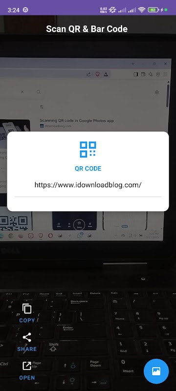 Hành động thông minh: Mở URL, sao chép văn bản hoặc chia sẻ nội dung đã quét