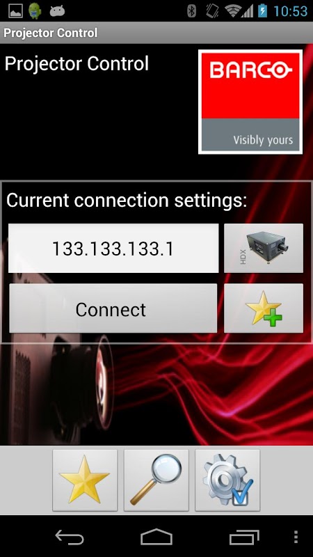 The “Projector Control” app is an application which is designed for smartphones and tablets running the Android operating system. It lets you control Barco projectors easily when you have them connected to the same wireless router.