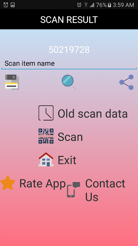 2. After scanning the code, it will allow user to search the product code in Google, share the code with friends or save locally to check later.