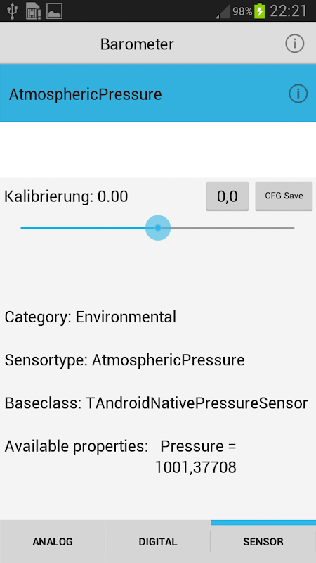 Barometer Hiển thị áp suất không khí hiện nay. Với mục đích này, các cảm biến áp suất không khí của điện thoại hoặc máy tính bảng của bạn được sử dụng.